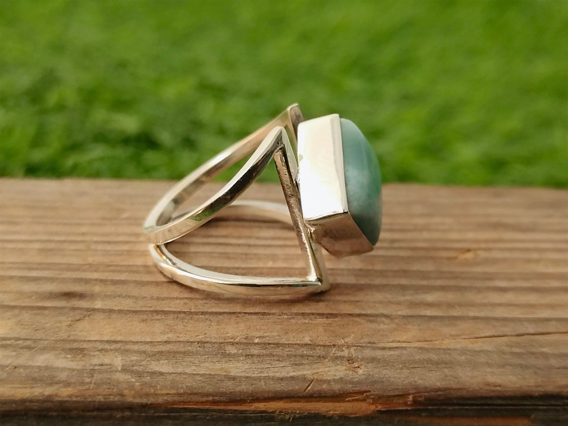 Larimar Natural Gemstone Ring -925 Sterling Silver Ring - Hand Crafted Bohemian Ring- Blue Larimar Ring- Rings - Gifts for her -Gifts