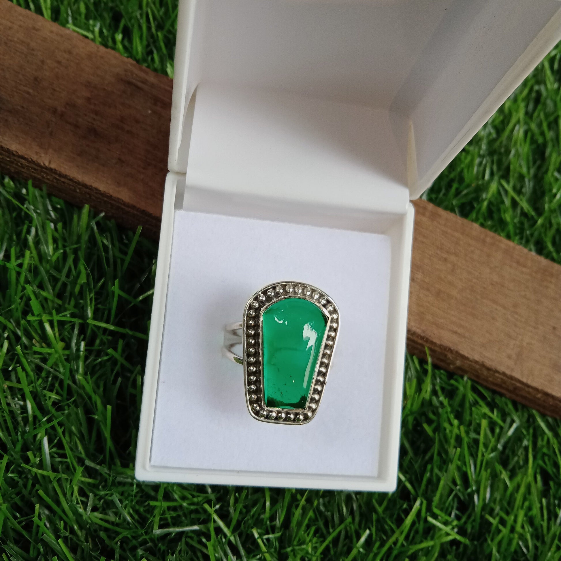 Emerald Glass 925 Sterling Silver Ring - Hand Crafted Big Shape Ring - Bohemian Emerald Glass silver Ring - Gift for her - summer gift