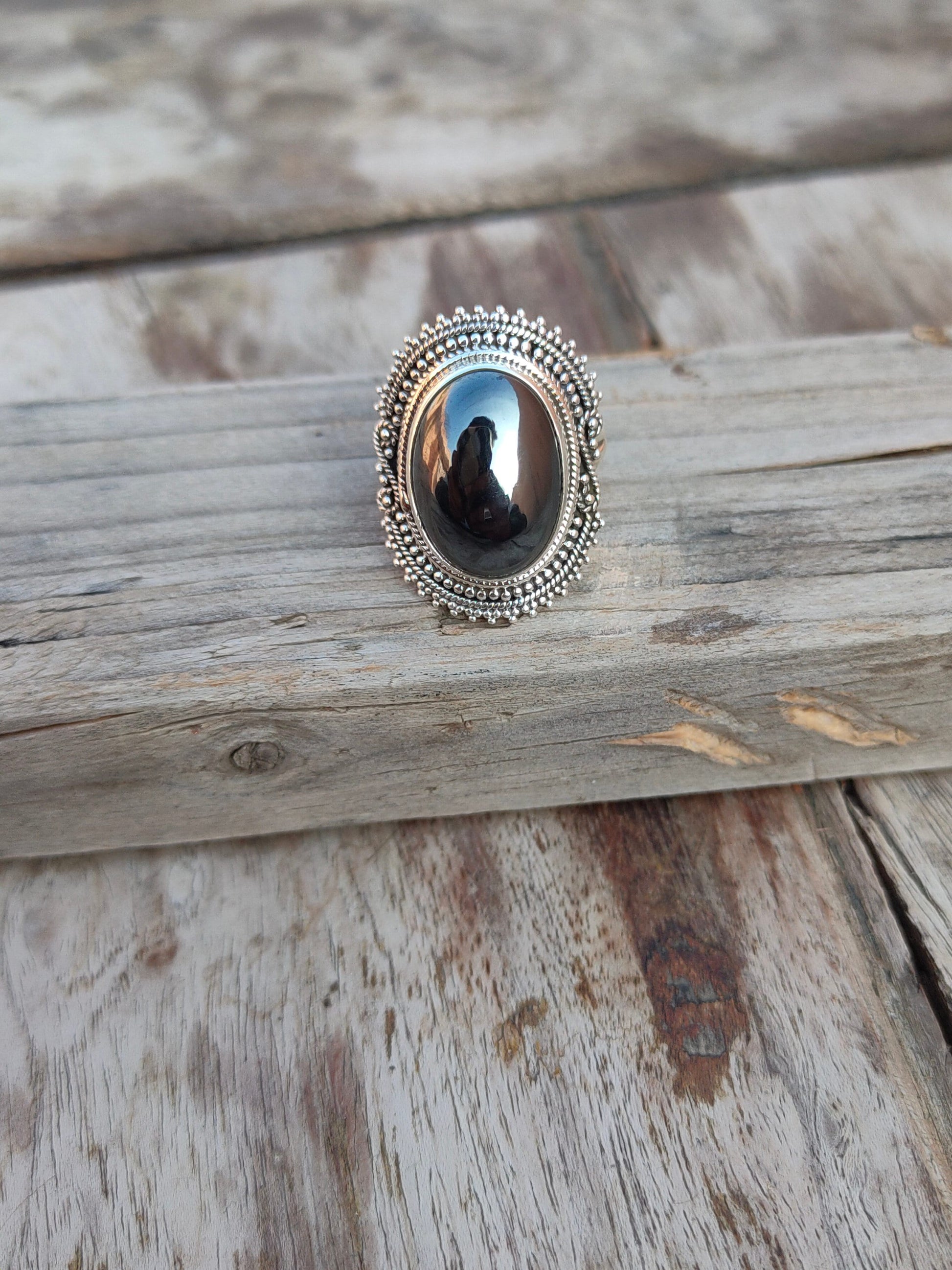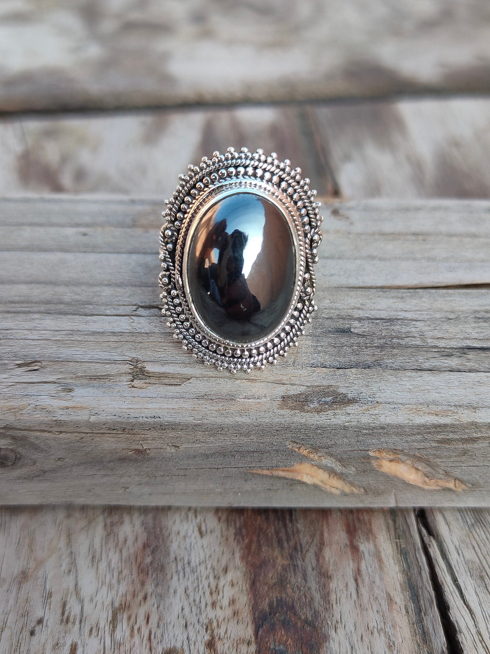 Boho Statement Ring - Hematite Sterling Silver Ring - Hand Crafted Bohemian Ring-Bohemian Ring - Hematite Rings -Gift for