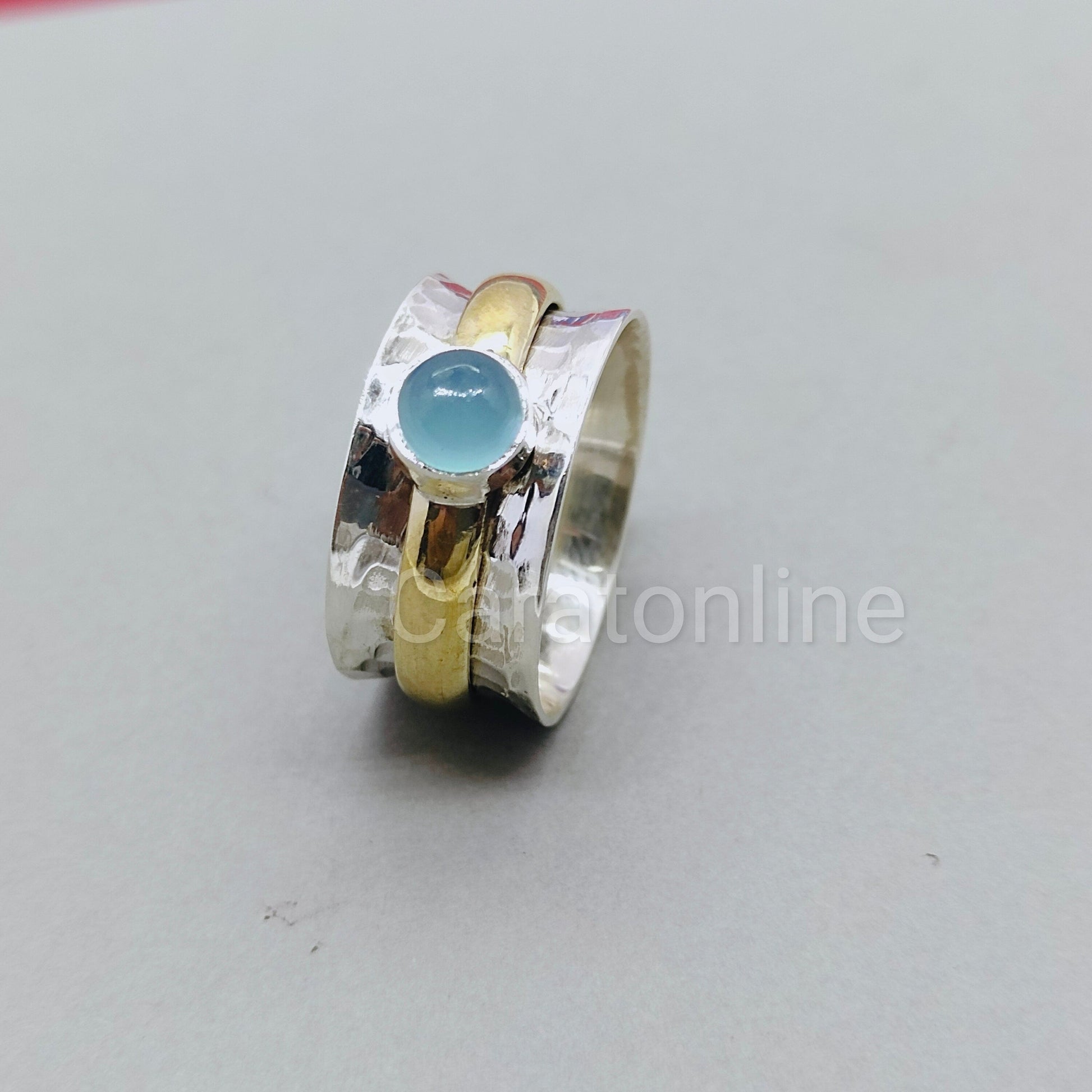 Gemstone silver band ring , spinner silver bands , spinner band fidget ring , anxiety ring , aqua band ring , 925 silver bands , silver band