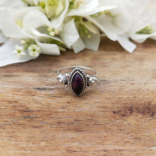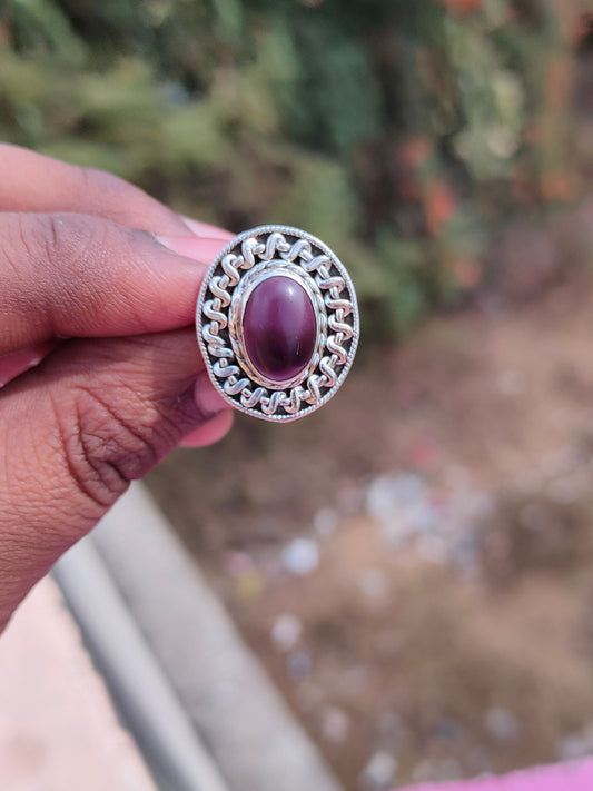 Boho Statement Ring - Glass Amethiyst Sterling Silver Ring - Hand Crafted Bohemian Ring-Bohemian Ring - Glass amethiyst Rings -Gift for