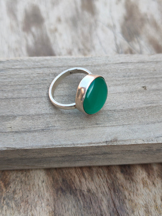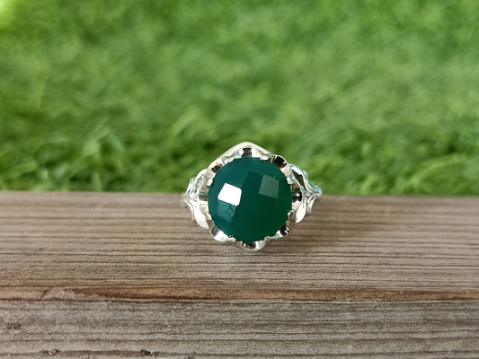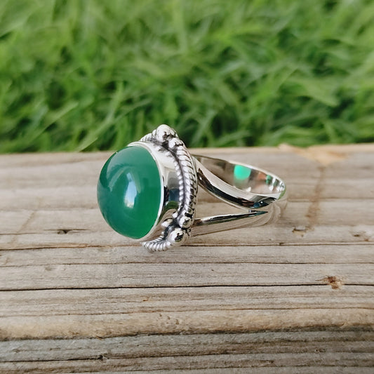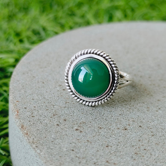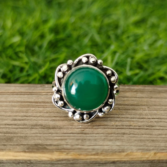 Boho Statement Ring - Green Onyx Sterling Silver Ring - Hand Crafted Bohemian Ring- Bohemian Ring - Green Onyx - Rings -Gift for her Round