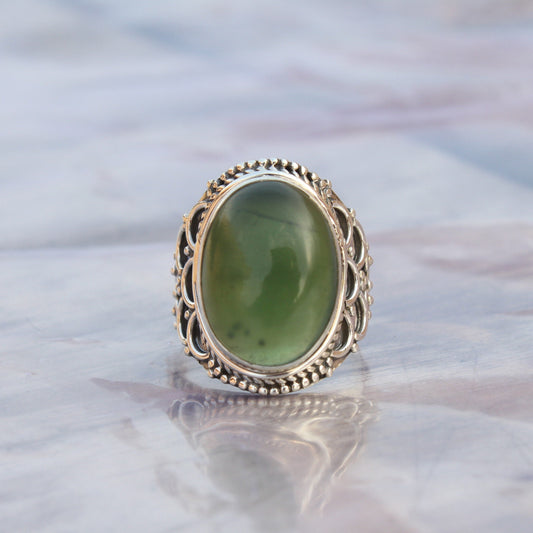 Boho Statement Ring - Green Jade Sterling Silver Ring - Hand Crafted Bohemian Ring-Bohemian Ring - Green Jade - Rings -Gift for