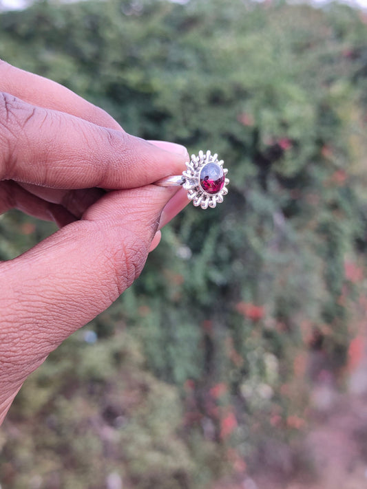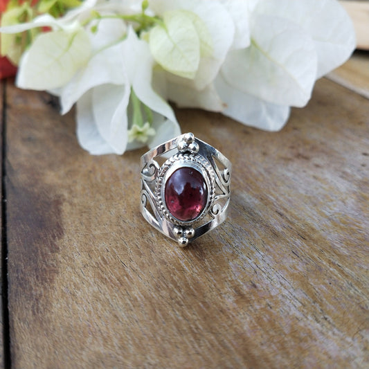 Boho Statement Ring - Garnet Sterling Silver Ring - Hand Crafted Bohemian Ring-Bohemian Ring - Garnet Rings -Gift for