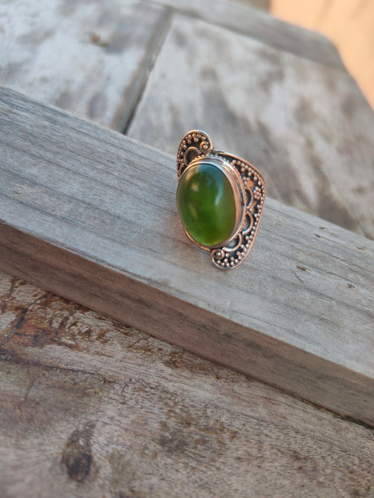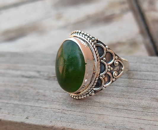 Boho Statement Ring - Green Jade Sterling Silver Ring - Hand Crafted Bohemian Ring-Bohemian Ring - Green Jade Rings -Gift for