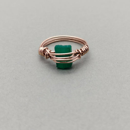 Green Emerald Silver rose gold plated ring, minimalist, summer ringstatement ring, Handmade Silver Ring, Green Emerald wired ring, Raw stone