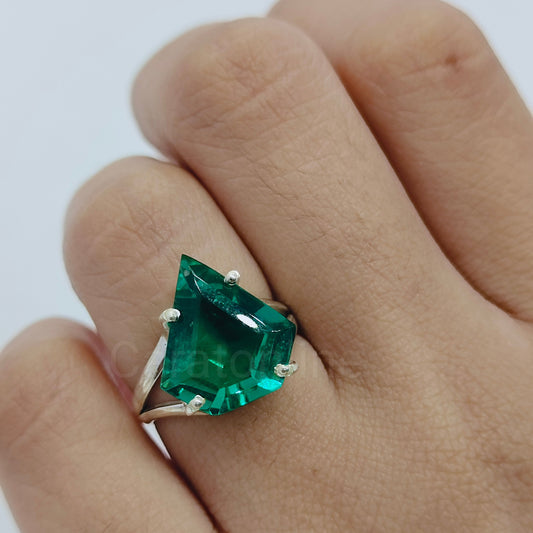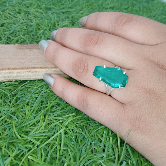 Green Emerald Glass stone Ring, 925 sterling Silver ring, Handmade Silver Ring, Green Emerald Glass Stone, Glass Stone Ring