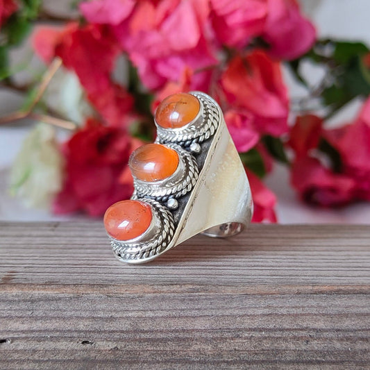 Beautiful Carnelian Boho Ring - 925 Sterling Silver Ring -Carnelian Bohemian Ring -Silver Ring -Statment Ring - Rings - Gift for her,