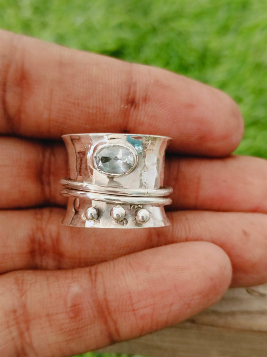 Aquamarine Stone Spinner Band, Sterling Silver Band, Unique Band Silver Ring, Handmade Silver Ring, Bohemian Band, Gifts for her , freeship