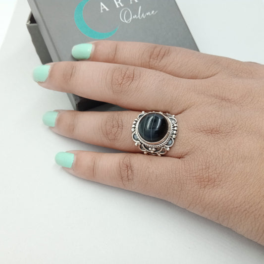 Black banded Agate Statement Ring - 925 Sterling Silver Ring - Hand Crafted Bohemian Ring -Bohemian Ring - Agate Ring - Rings - Gift for