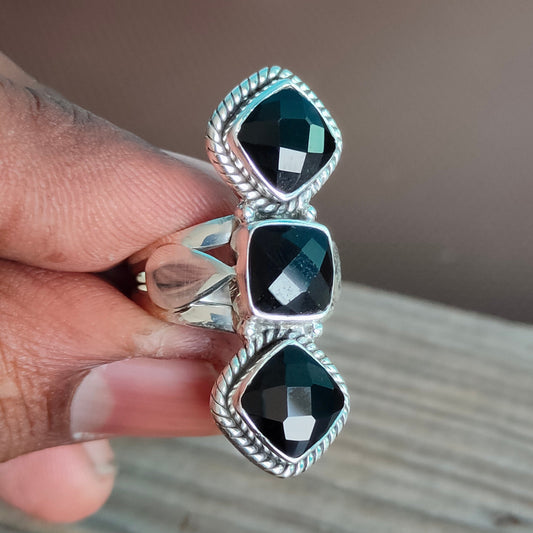 Black Onyx Boho Ring,925 Sterling Silver Ring Black Onyx 3 stone ring - Bohemian Ring, Black Onyx ring- Rings - Gift for her , Rings- Gifts
