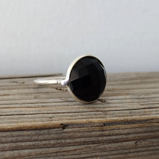 Black Onyx Gemstone Round 925 Sterling Silver Ring | Black Onyx Gemstone Ring | Gifts for Her | Made to Order | Boho | Black Onyx Big ring