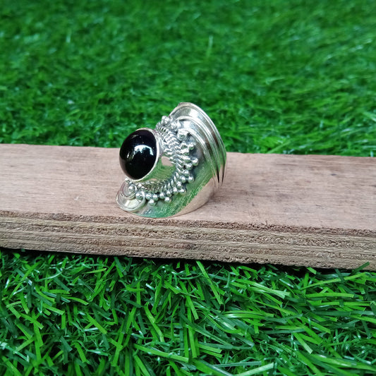 Black Onyx Boho Statement Sterling silver Ring -Black Onyx Gemstone - Hand Crafted Ring -Bohemian Ring Black Onyx Ring -Rings -Gift for her