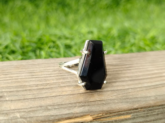 Black Onyx Coffin Shape Boho Statement Ring -Black Onyx - Hand Crafted Coffin Shape Ring -Bohemian Ring Black Onyx Ring -Rings -Gift for her
