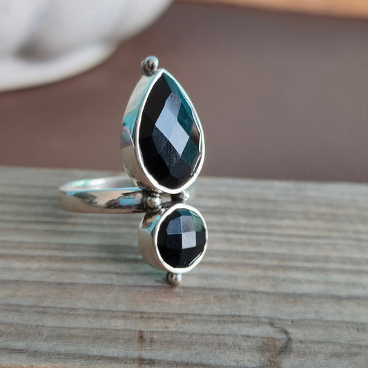 Black Onyx Boho Ring,925 Sterling Silver Ring Black Onyx 2 stone ring - Bohemian Ring, Black Onyx ring- Rings - Gift for her , Rings- Gifts