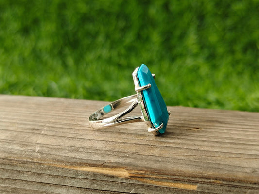 Turquoise Gemstone Boho Ring - 925 Sterling Silver Ring -Turquoise coffin ring -Bohemian Ring -Turquoise ring- Triangle ring - Rings -Gifts