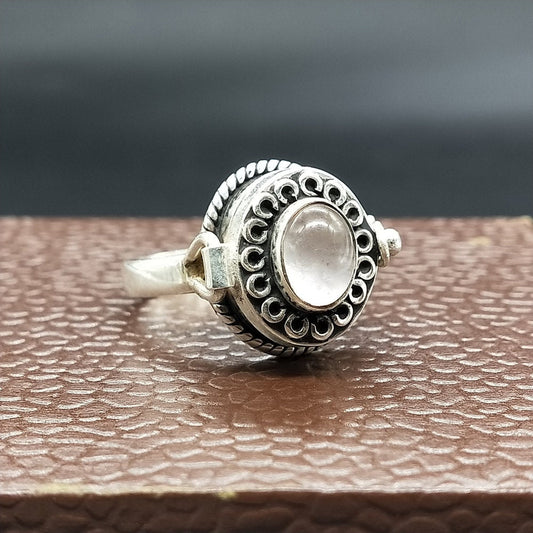 Unique Secret message ring , Sterling silver 925 ring , Rose Quartz Silver Ring , January birthstone ring , love ring, small box ring , gift