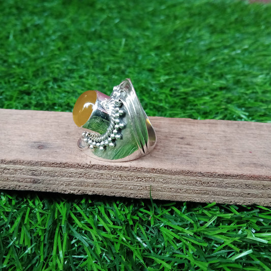 Yellow Calcy Gemstone Round 925 Sterling Silver Ring | Yellow Gemstone Ring | Gifts for Her | Made to Order | Boho | Calcy Ring | Big ring