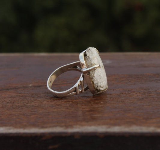 White Crystal Druzi Stone 925 Sterling Silver Ring - Hand Crafted Bohemian Ring-Bohemian Ring - White Crystal - Rings -Gift for