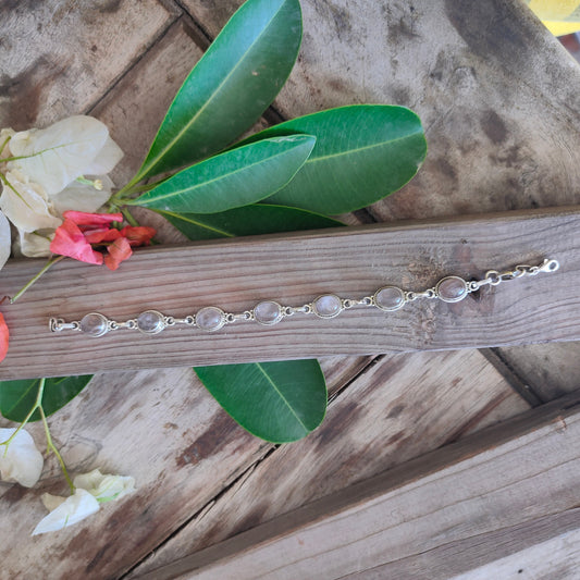 Rosenquarz Edelstein Armband - Silber Perlen Armband - 925 Sterling Silber Armband - zierliches Silber Armband für Frauen Armbänder - Als Geschenk