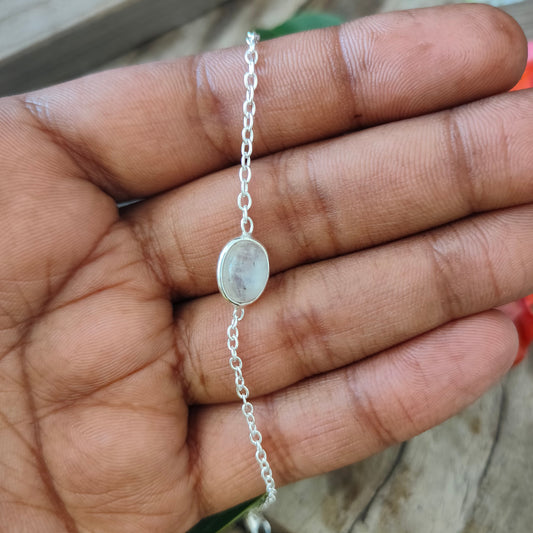 Mondsteinarmband - Silberperlenarmband - Sterling Silber Armband - Zierliches Silberarmband für Frauenarmbänder - Silber-zierliches Armband