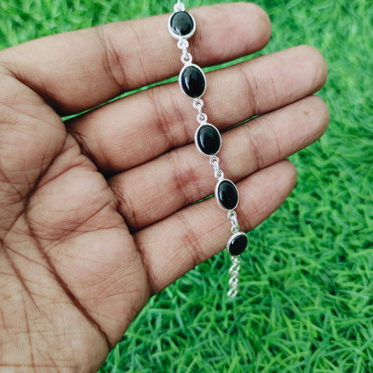 Schwarzes Onyx Edelsteinarmband - Silberperlenarmband - 925 Sterling Silber Armband - zierliches Silberarmband für Frauen Armbänder - Als Geschenk