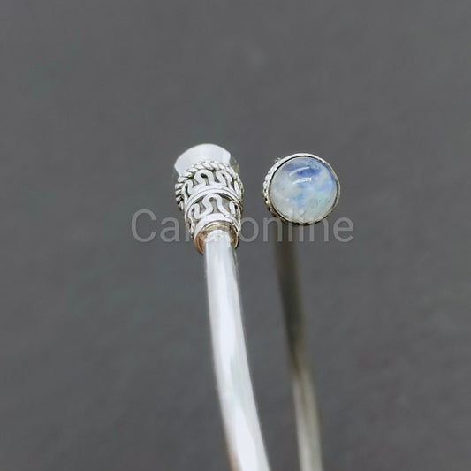 MONDSTEIN Armreif, Massiver 925 Sterling Silber Armreif, Edelstein Niedliches schlichtes Armband, Armband für sie, Geschenk Armreif