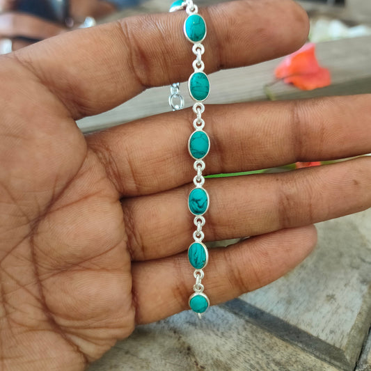 Türkises Edelsteinarmband - Silbernes Perlenarmband - 925 Sterling Silber Armband - zierliches Silberarmband für Frauen Armbänder - Silber