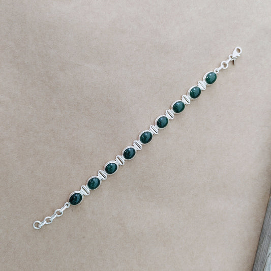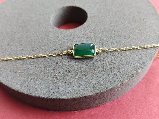 Grünes Onyx Edelsteinarmband-Silberperlenarmband-925 Silberarmband-Vergoldetes Armband für Frauen Armbänder- Silber- Grüner Onyx