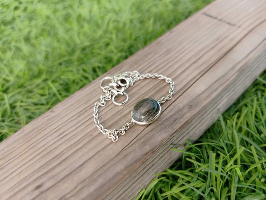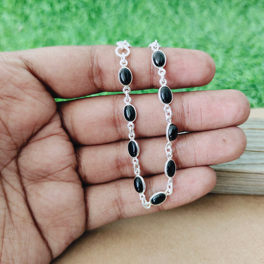 Schwarzes Rutil-Edelsteinarmband - Silberperlenarmband - 925er Silberarmband - zierliches Silberarmband für Frauenarmbänder - Silber - Schwarzer Rutil
