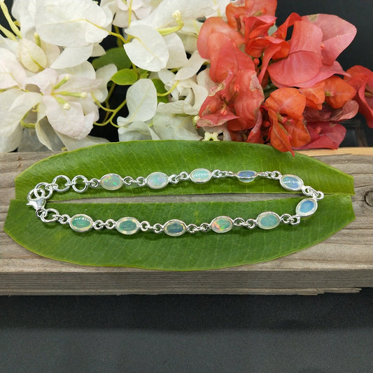 Opal Edelstein Silberarmband - Silberperlenarmband - 925 Silberarmband - zierliches Silberarmband für Frauen Armbänder-Silber, Opalstein