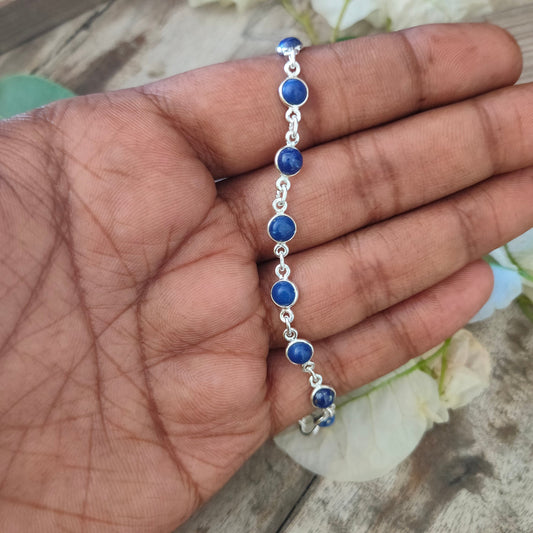 Lapislazuli-Edelsteinarmband - Silberperlenarmband - 925er Silberarmband - zierliches Silberarmband für Frauenarmbänder - Silber