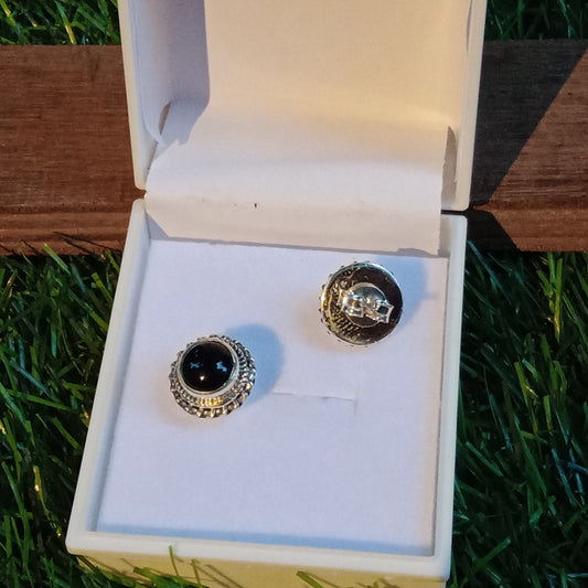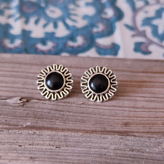 Böhmische schwarze Onyx Silber Ohrstecker - Sterling Silber 925 Ohrstecker - zierliche Ohrstecker - handgefertigte Boho Ohrstecker - Silber Ohrstecker - Ohrringe