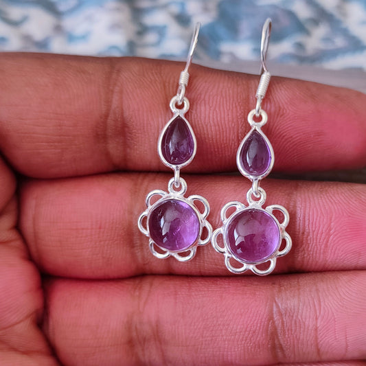 Natürlicher Amethyst Sterling Silber Handgemachte Ohrringe Amethyst Stein Silber Ohrringe Täglich tragbare Ohrringe Tropfen Ohrringe Geschenk für Sie