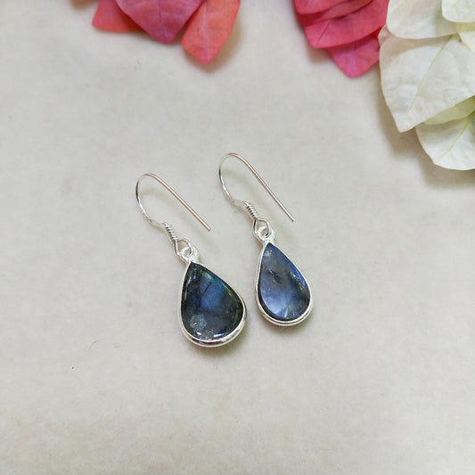 Labradorit Sterling Silber handgefertigte Ohrringe | Labradorit Stein | Täglich tragbare Ohrringe in ovaler Form - Ohrringe - Geschenk für Sie