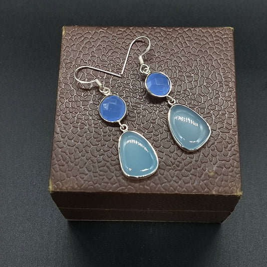 Aqua Calci Sterling Silber handgefertigte Ohrringe | Aqua Calci Stein lange Ohrringe - Geschenk für sie - Aqua Calci - Geschenke - bestes Geschenk, Weihnachtsgeschenk