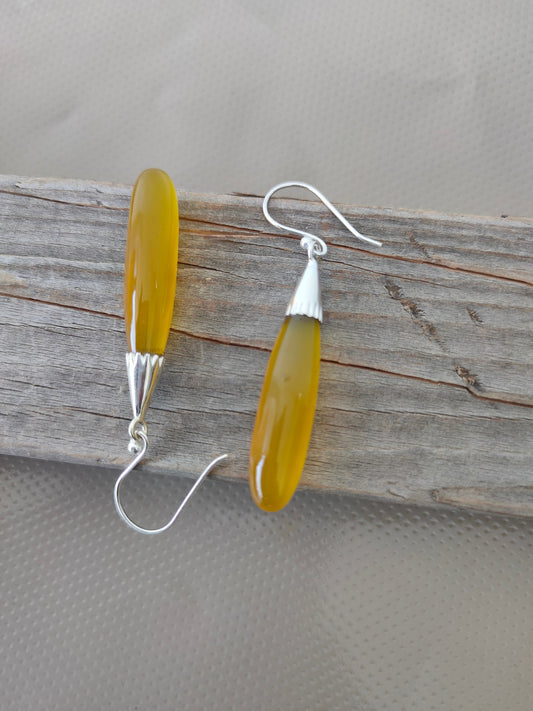 Gelber Calci 925 Sterling Silber - Handgefertigte Ohrringe - Gelbe Calci Birnenform Silberohrringe - Boho Ohrringe - Geschenk für Sie - Einzigartige Ohrringe