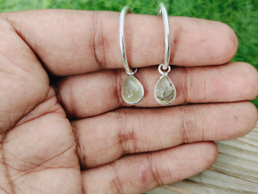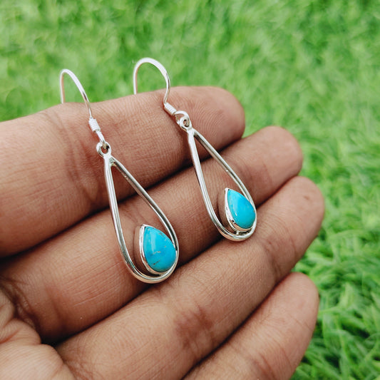 Türkisfarbener natürlicher Edelstein, handgefertigter Ohrring aus Sterlingsilber | Türkisstein | Täglich tragbarer Ohrring in Birnenform | Lünettenohrringe, Geschenk für Sie