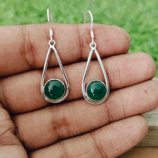Grüner Onyx Sterling Silber handgefertigte Ohrringe | Grüner Onyx Stein | Täglich tragbare Ohrringe in runder Form | Lünettenohrringe Geschenke - Grüner Onyx