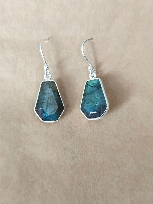 Labradorit Sterling Silber handgefertigte Ohrringe | Labradorit Stein | Täglich tragbare Ohrringe in Sargform - Ohrringe - Geschenk für ihre Beerdigung