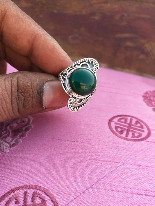 Natürlicher grüner Onyx Statement Ring - Sterling Silber Ring - Handgemachter Boho Ring - Böhmischer Grüner Onyx Stein Ring - Ringe - Geschenk für