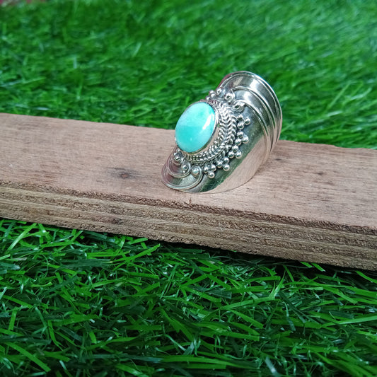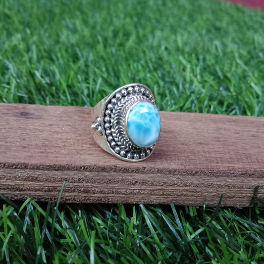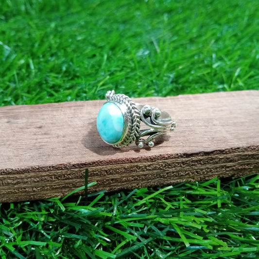 Natürlicher Larimar Boho Ring, 925 Sterling Silber Ring, Larimar Edelstein Silber Ring, Minimalistischer Ring, blauer Stein Ring, Geschenk für Frauen
