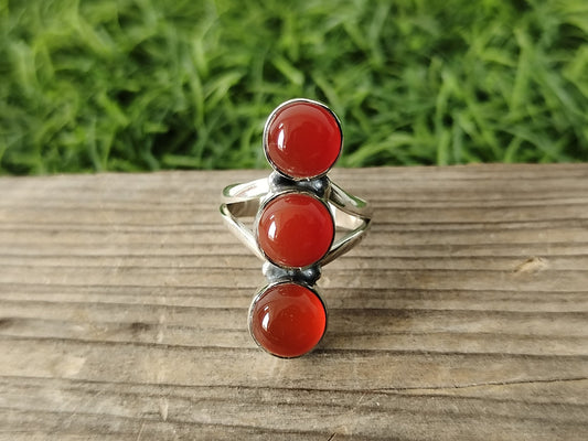 Natürlicher Karneol Silberring, 925 Sterling Silber Ring, Dreifachstein Ring, 925 Sterling Silber Ring, Edelstein Ring, Silberschmuck, Ringe
