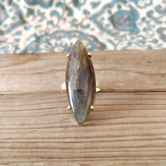 Natürlicher Labradorit Marquise Stein Ring - Cabochon Feuerring - 925 Sterling Silber Ring - Großer Ring - Jubiläumsgeschenk - Labradorit