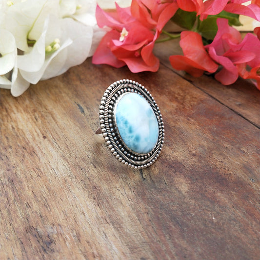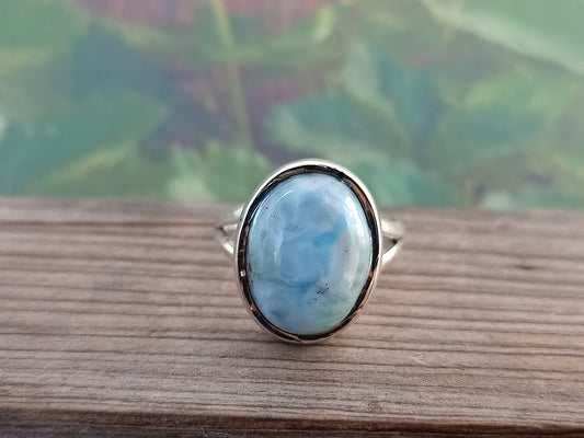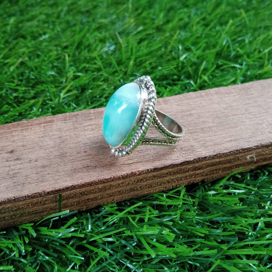 Natürlicher Larimar-Steinring in Topqualität - Larimar-Ring - 925er Sterlingsilber-Ring - Ovaler Ring - Eheringe - Silberringe - Geschenke