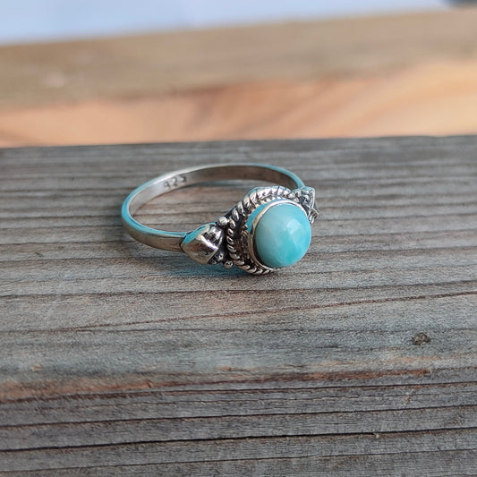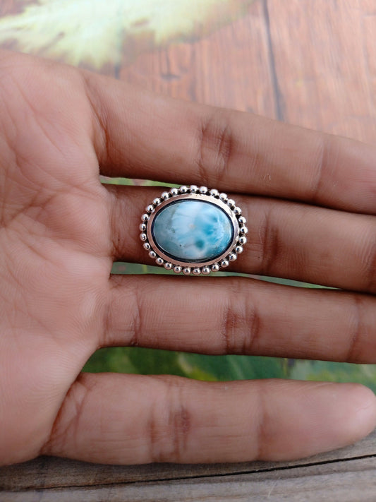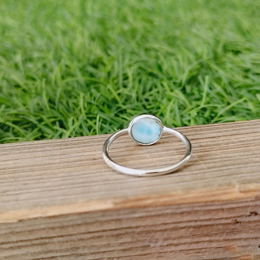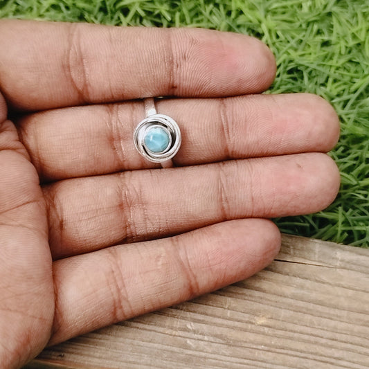 Natürlicher Larimar Boho Ring, 925 Sterling Silber Ring, Larimar Edelstein Silber Ring, Minimalistischer Ring, blauer Stein Ring, Geschenk für Frauen