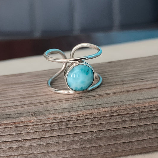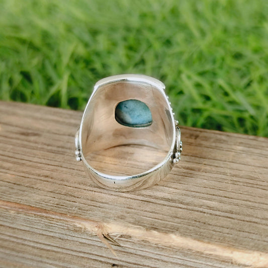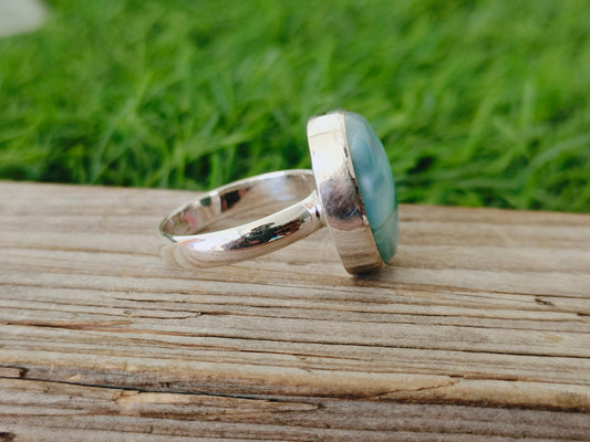 Natürlicher Larimar-Steinring in Topqualität - Cabochon-Ring - 925er Sterlingsilberring - Larimar-Ring - Eheringe - Silberringe - Geschenke