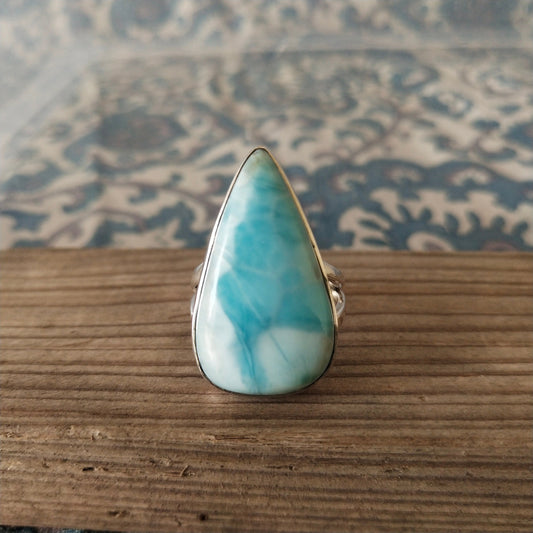 Natürlicher Larimar-Steinring in Topqualität - Cabochon-Feuerring - 925er Sterlingsilberring - Großer birnenförmiger Ring - Eheringe - Silberringe