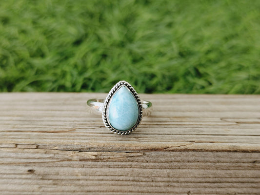 Natürlicher Larimar-Steinring in Topqualität - Cabochon-Ring - 925er Sterlingsilberring - Birnenförmiger Larimar-Ring - Eheringe - Silberringe - Geschenke