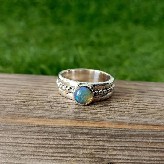 Opalsteinband, Sterling Silber Band, Einzigartiger Silberring, handgefertigter Silberring, Bohemian Band, Bänder, Bandring Opalband, Stapelbar
